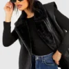 BOOHOO Faux Fur Trim Oversized Aviator Vest