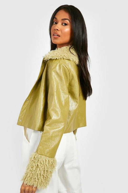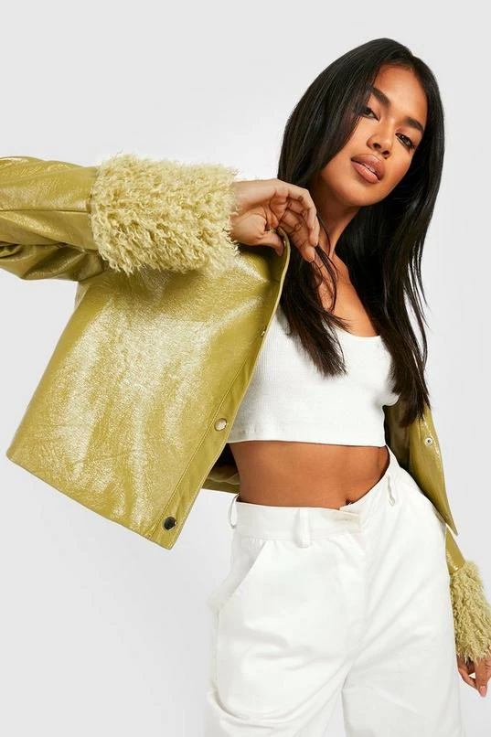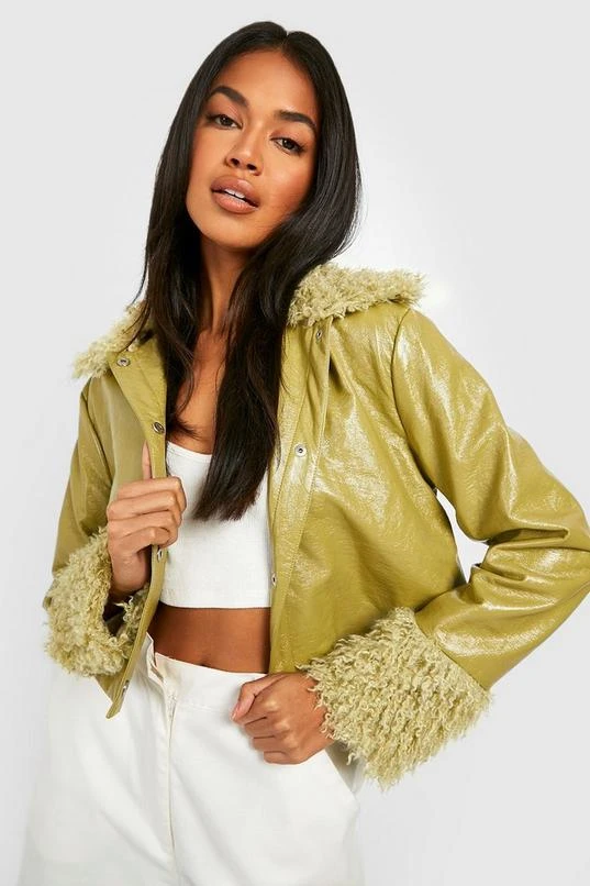 BOOHOO Faux Fur Trim Pu Jacket