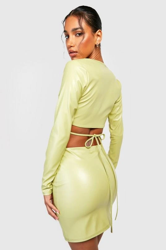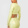 BOOHOO Faux Leather Tie Cropped Shirt & Mini Skirt