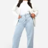 BOOHOO Feather Trim High Waisted Straight Leg Jeans