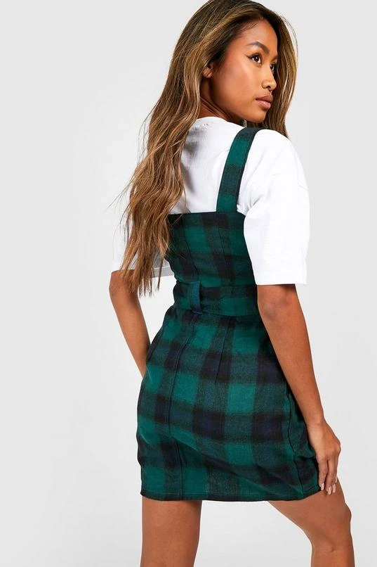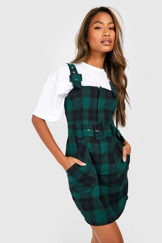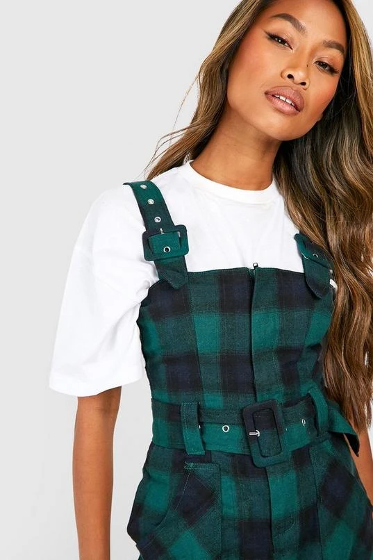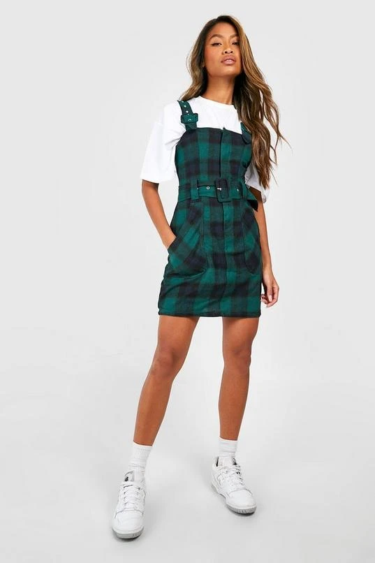 BOOHOO Flannel Buckle Detail Jumper Dress