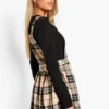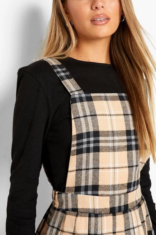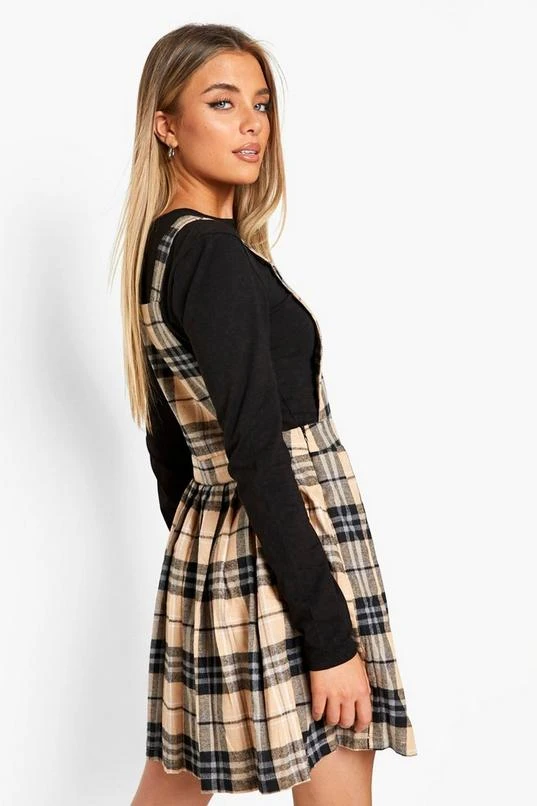 BOOHOO Flannel Print Pleated Skirt Jumper Dress