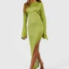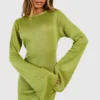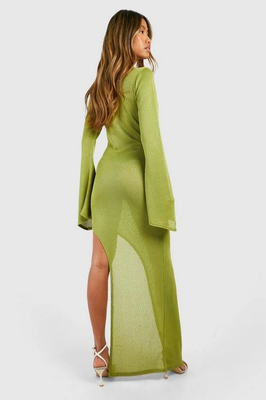 BOOHOO Flare Sleeve Split Leg Snit Maxi Dress