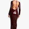 BOOHOO Flare Sleeve Tie Back Column Sequin Maxi Dress