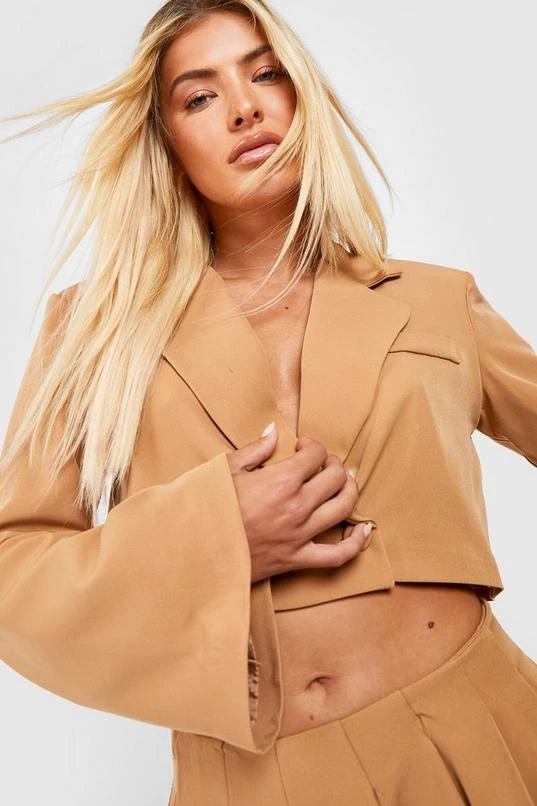BOOHOO Flared Sleeve Cropped Tailored Blazer