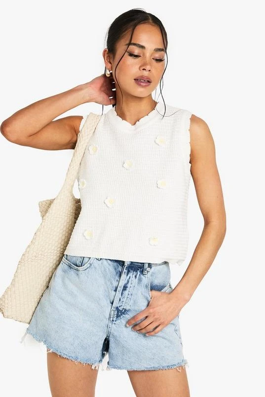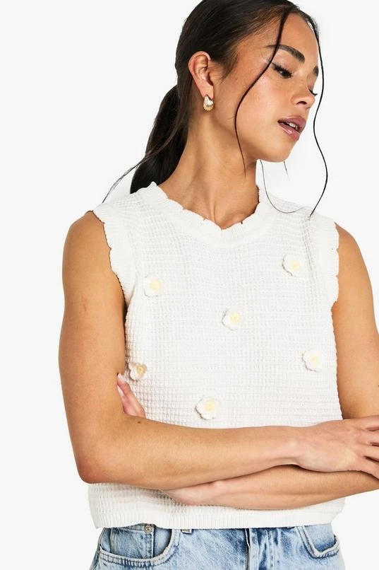 BOOHOO Floral Appliqué Crochet Knitted Top