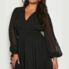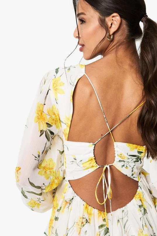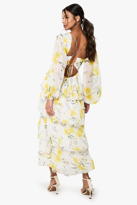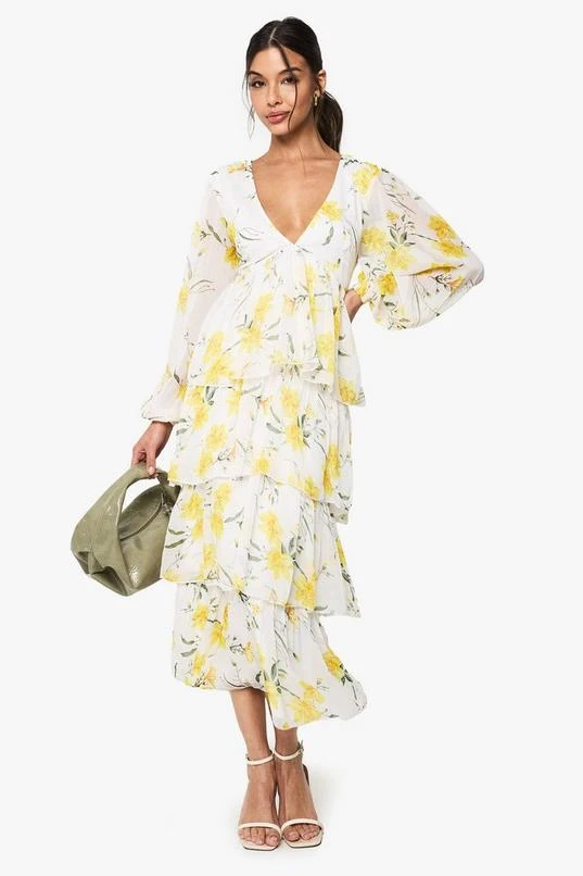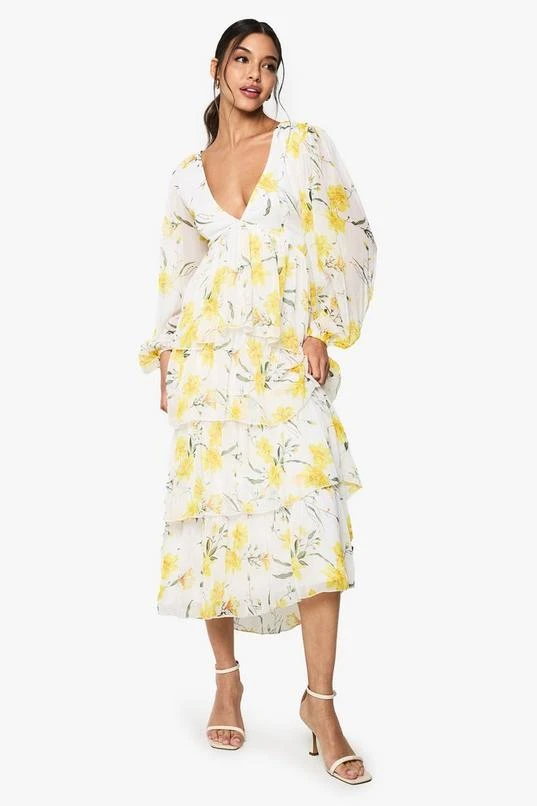 BOOHOO Floral Chiffon Plunge Ruffle Midi Dress