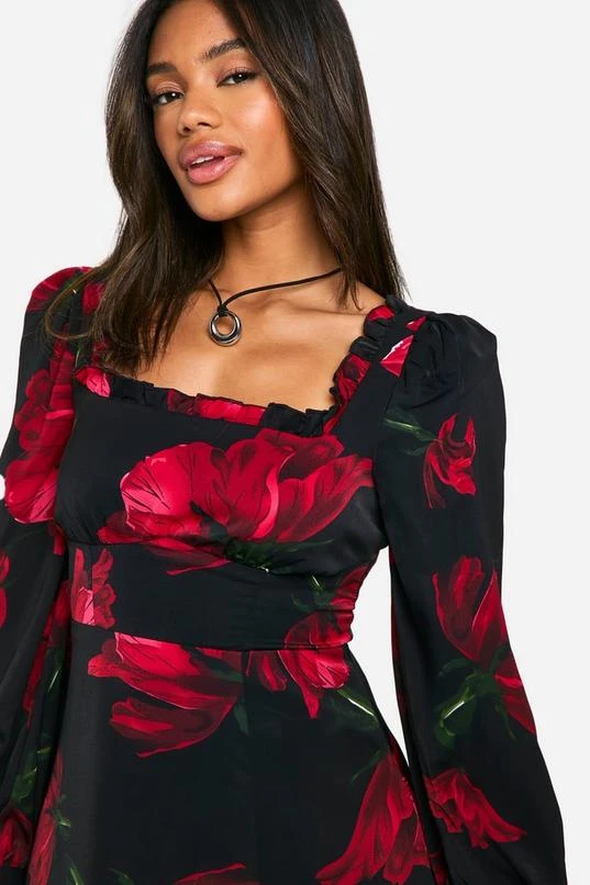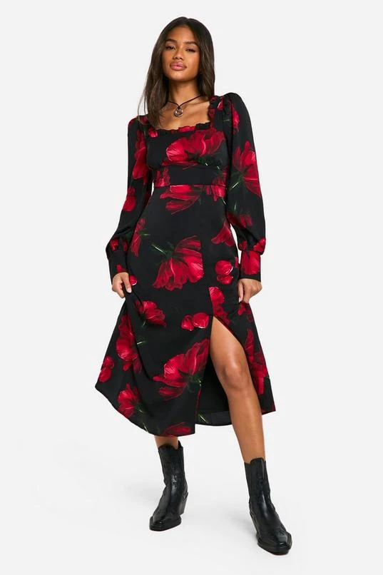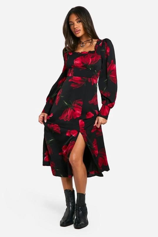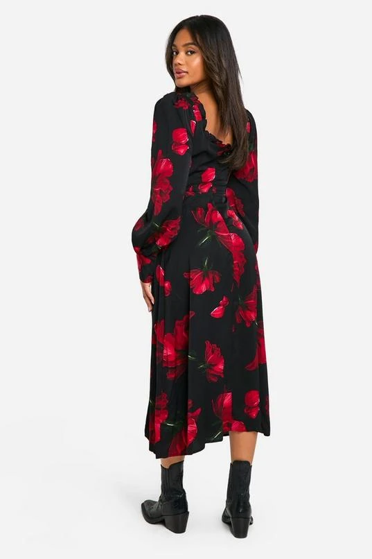 BOOHOO Floral Corset Milkmaid Midi Dress