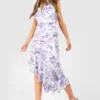 BOOHOO Floral Cowl Back Asymmetric Maxi Dress