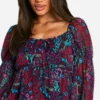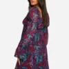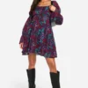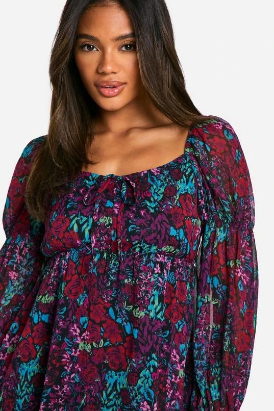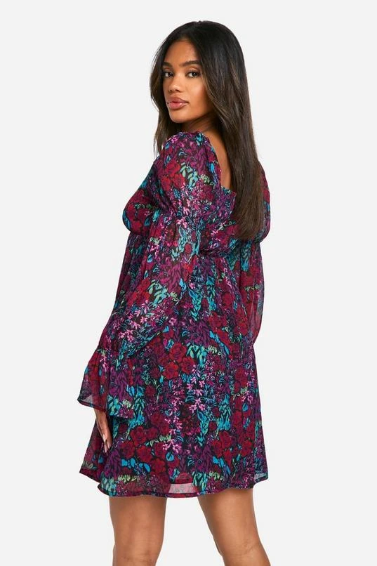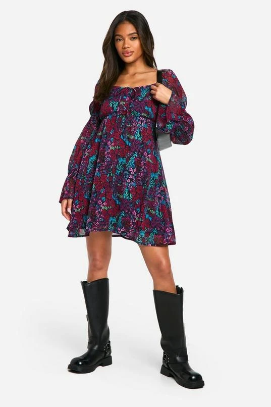 BOOHOO Floral Crinkle Chiffon Long Sleeve Smock Dress