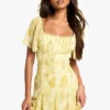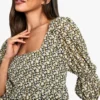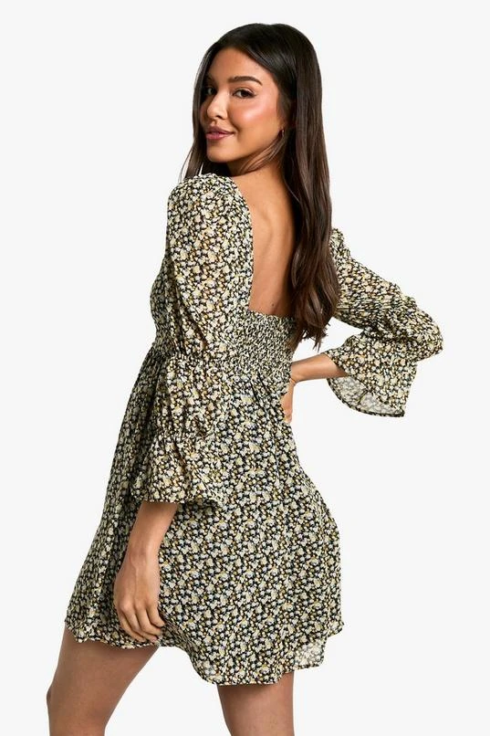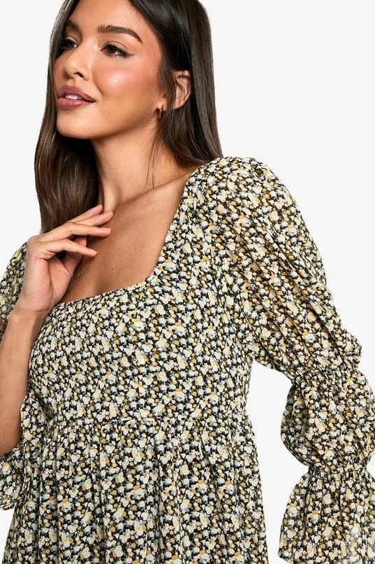 BOOHOO Floral Gathered Puff Sleeve Smock Dress