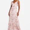 BOOHOO Floral Hand Embellished Halter Mesh Maxi Dress