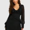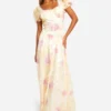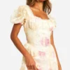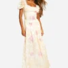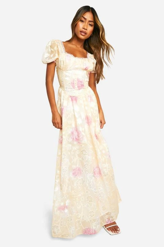 BOOHOO Floral Jacquard Puff Sleeve Milkmaid Maxi Dress
