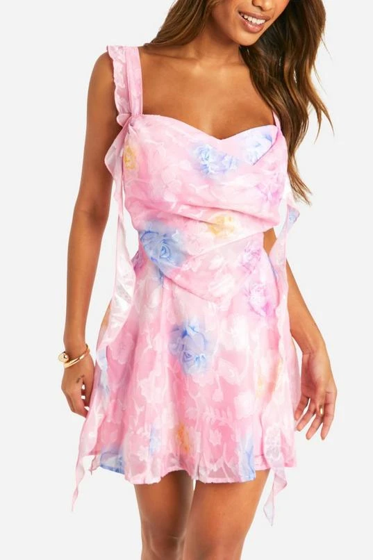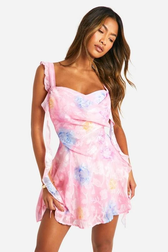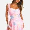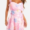 BOOHOO Floral Jaquard Mini Skater Dress