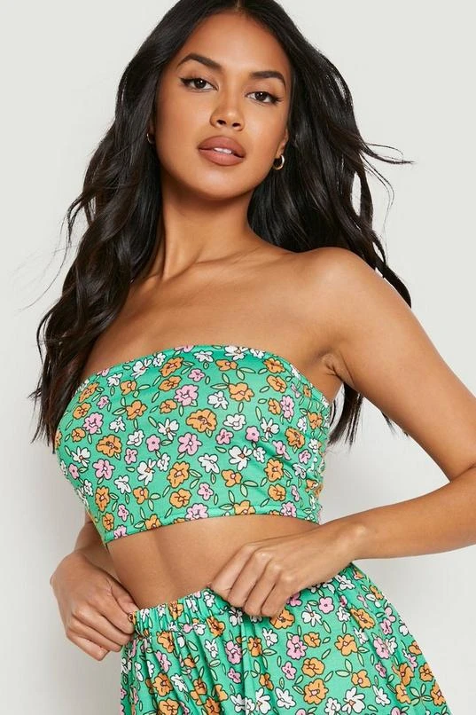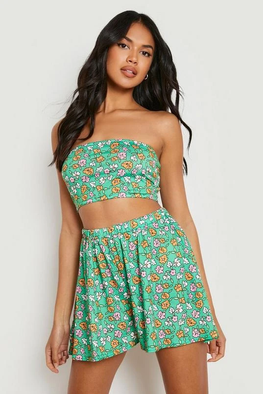 BOOHOO Floral Jersey Knit Bandeau & Flowy Shorts