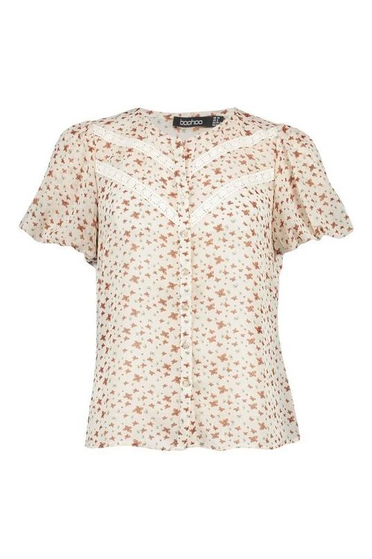 BOOHOO Floral Lace Trim Blouse