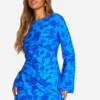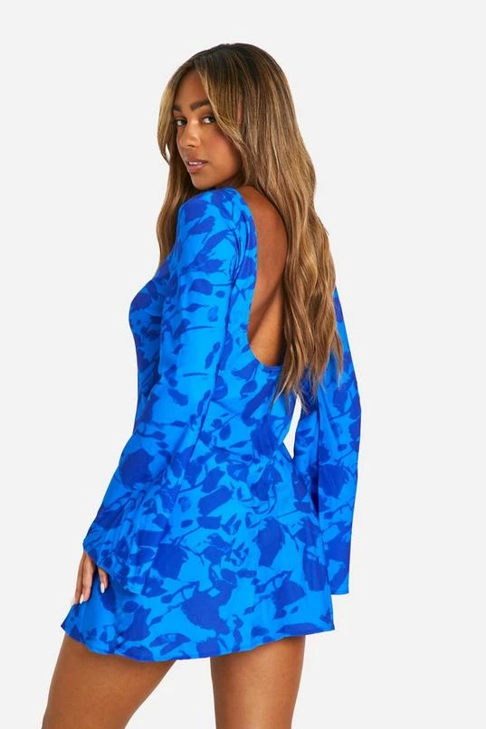 BOOHOO Floral Low Back Flare Sleeve Dress