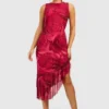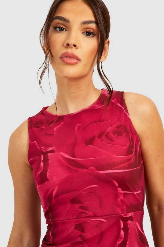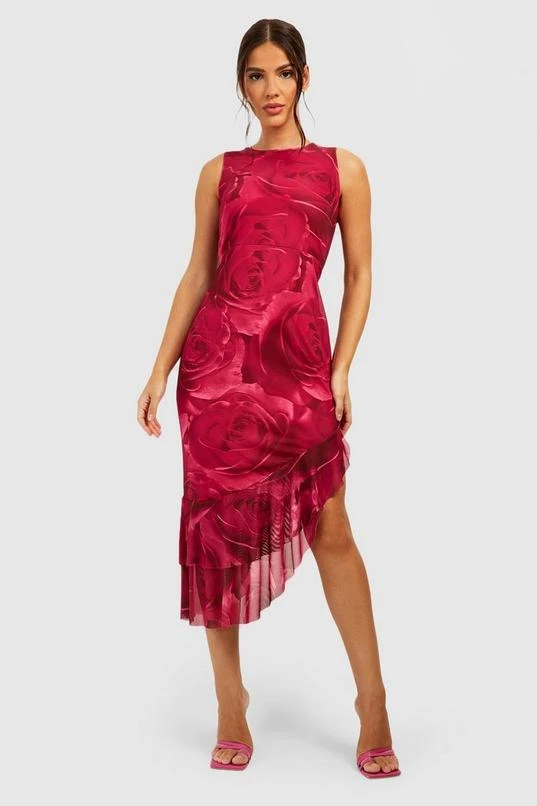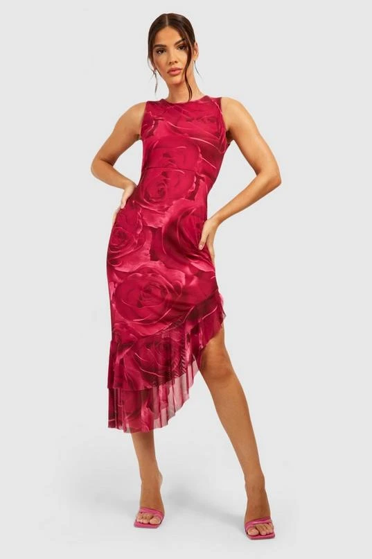BOOHOO Floral Mesh Ruffle Midi Dress