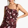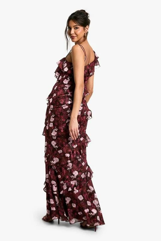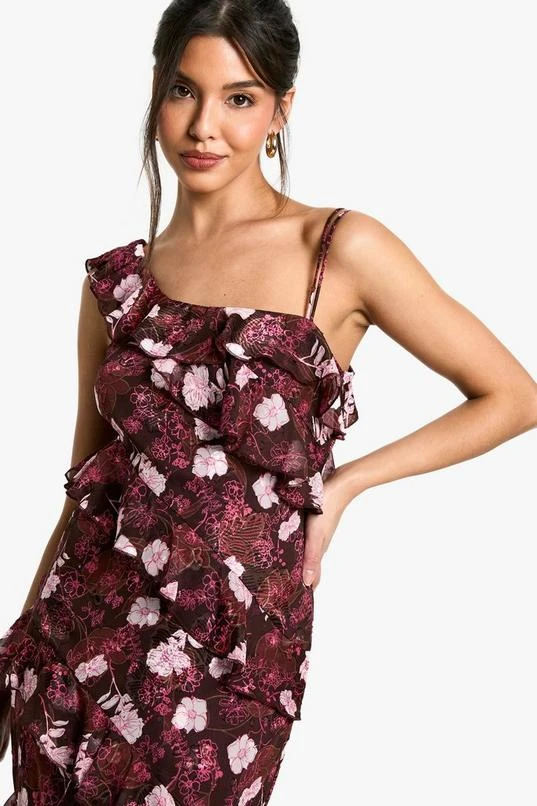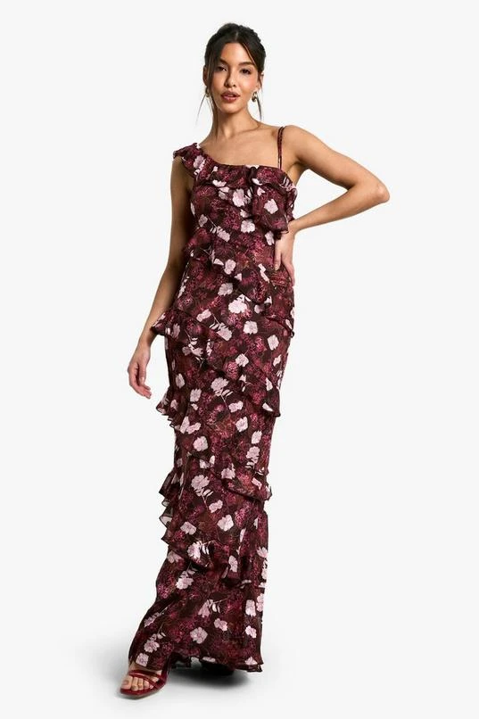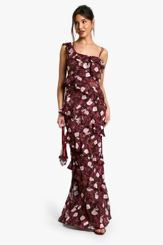 BOOHOO Floral One Shoulder Ruffle Maxi Dress