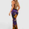 BOOHOO Floral Print Mesh Maxi Slip Dress