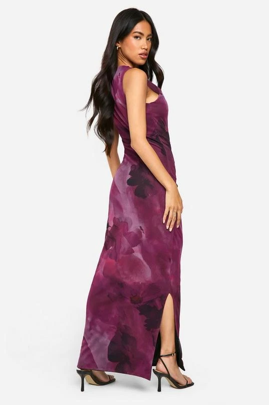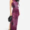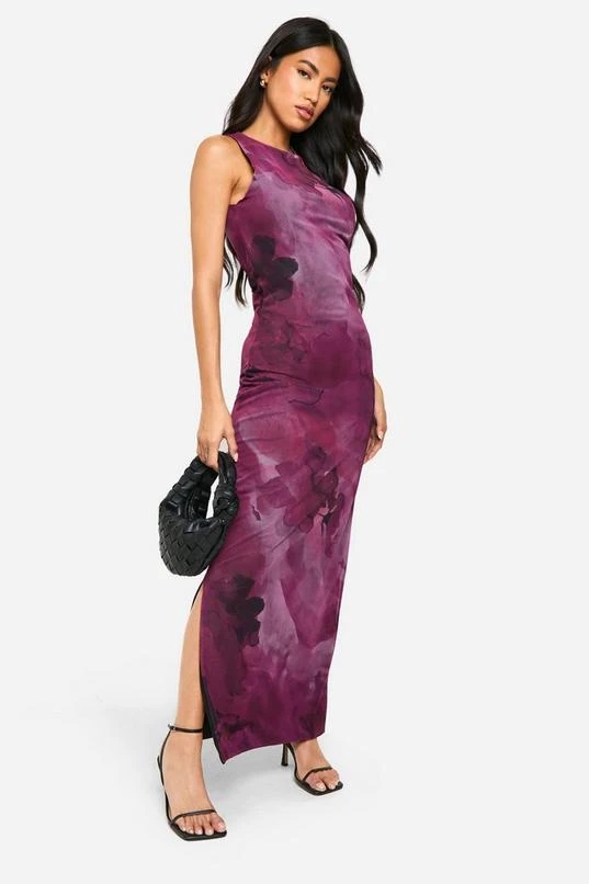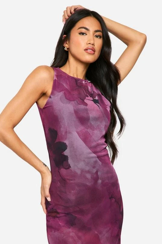 BOOHOO Floral Print Mesh Racer Neck Maxi Dress