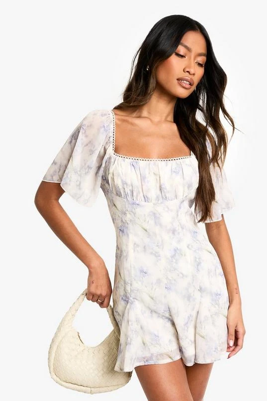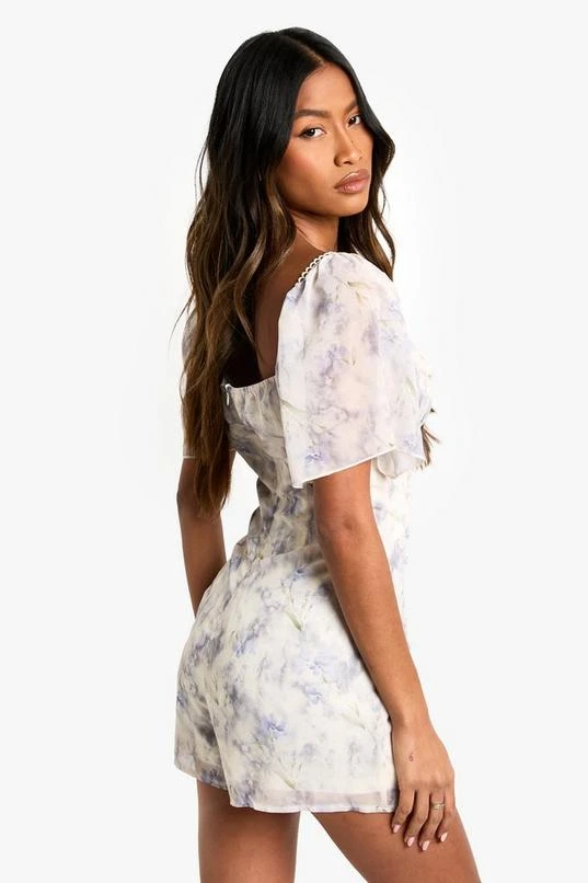 BOOHOO Floral Printed Milkmaid Godet Hem Playsuit