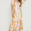 BOOHOO Floral Puff Sleeve Drop Hem Midi Dress