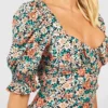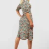 BOOHOO Floral Puff Sleeve Slit Front Midi Dress