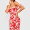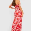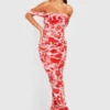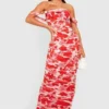 BOOHOO Floral Ruched Mesh Off The Shoulder Maxi Dress