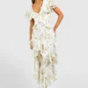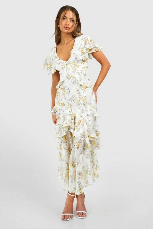BOOHOO Floral Ruffle Maxi Dress