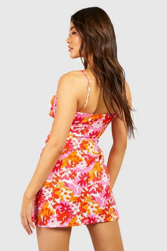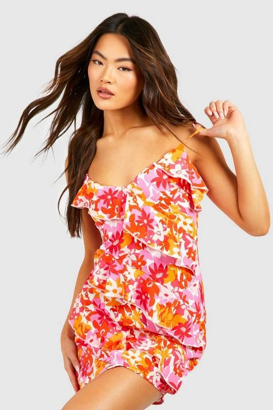 BOOHOO Floral Ruffle Strappy Skater Dress
