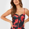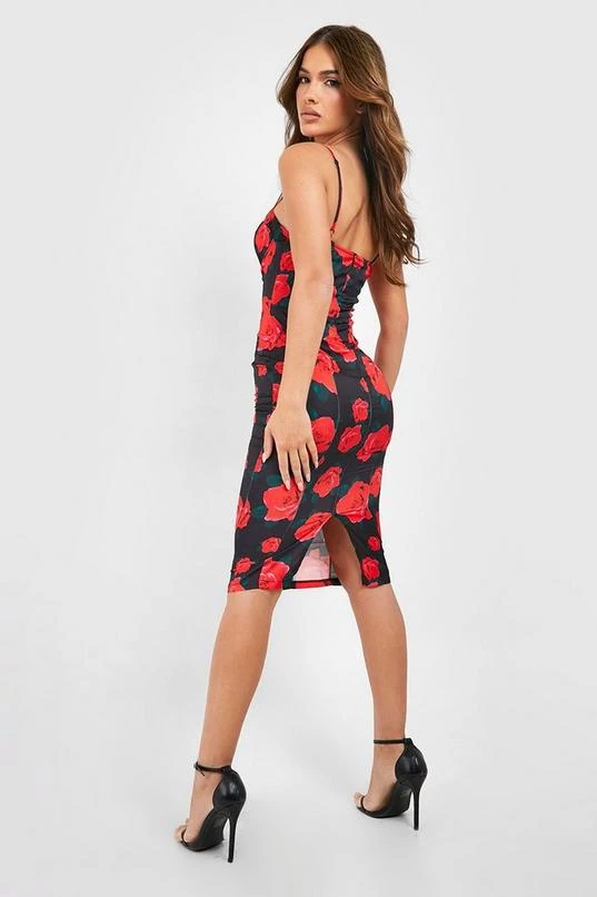BOOHOO Floral Satin Corset Detail Midi Dress