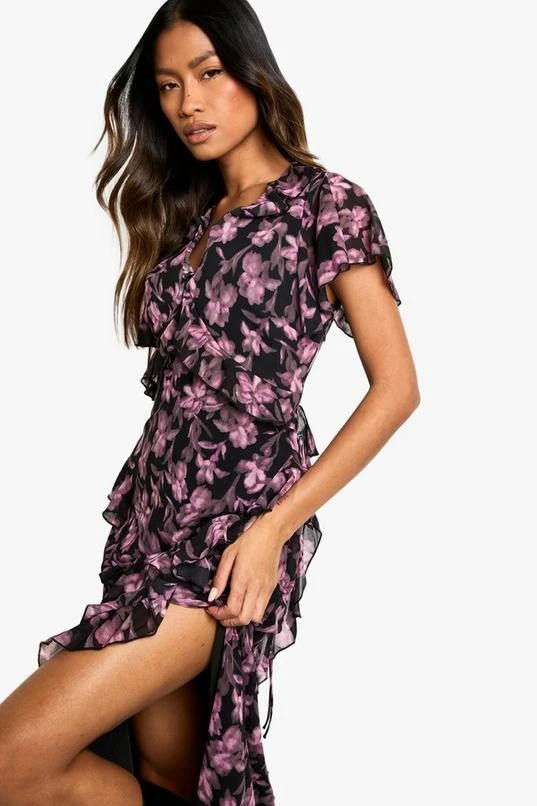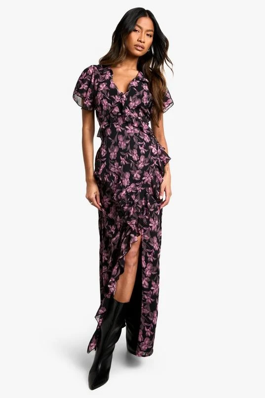 BOOHOO Floral V Neck Split Maxi Dress