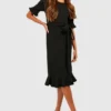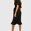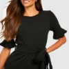 BOOHOO Frill Detail Belted Midi Dress