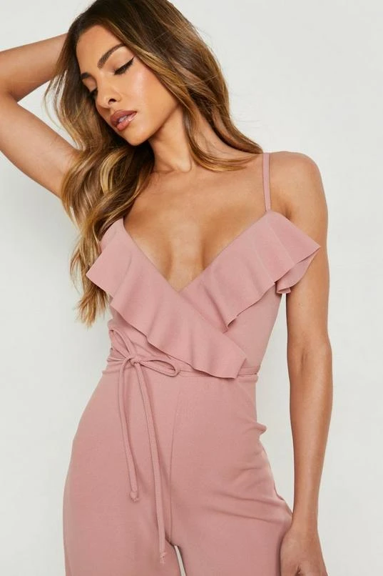 BOOHOO Frill Detail Strappy Culotte Jumpsuit