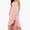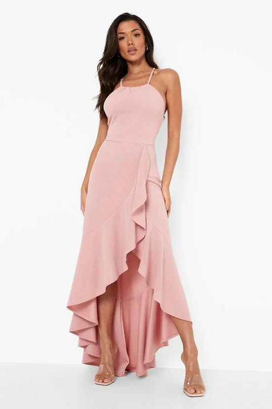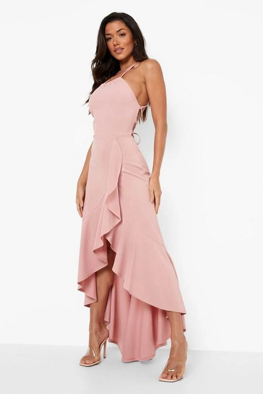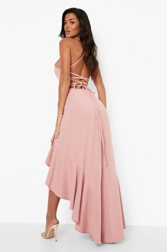 BOOHOO Frill Hem Lace Back Detail Dress