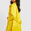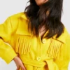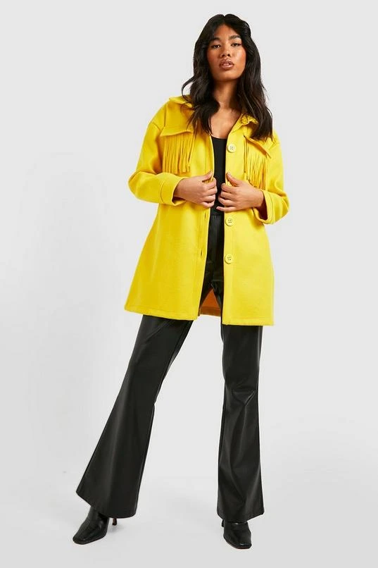 BOOHOO Fringe Detail Belted Wool Look Shacket