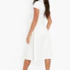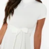 BOOHOO Funnel Neck Belted Midi Skater Dress