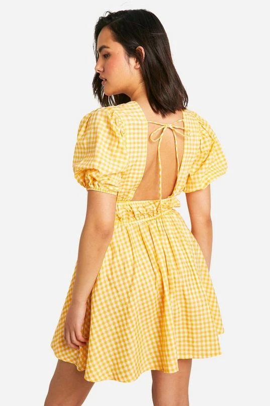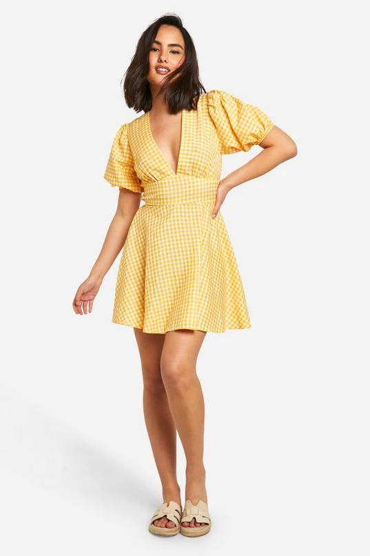 BOOHOO Gingham Puff Sleeve Smock Dress