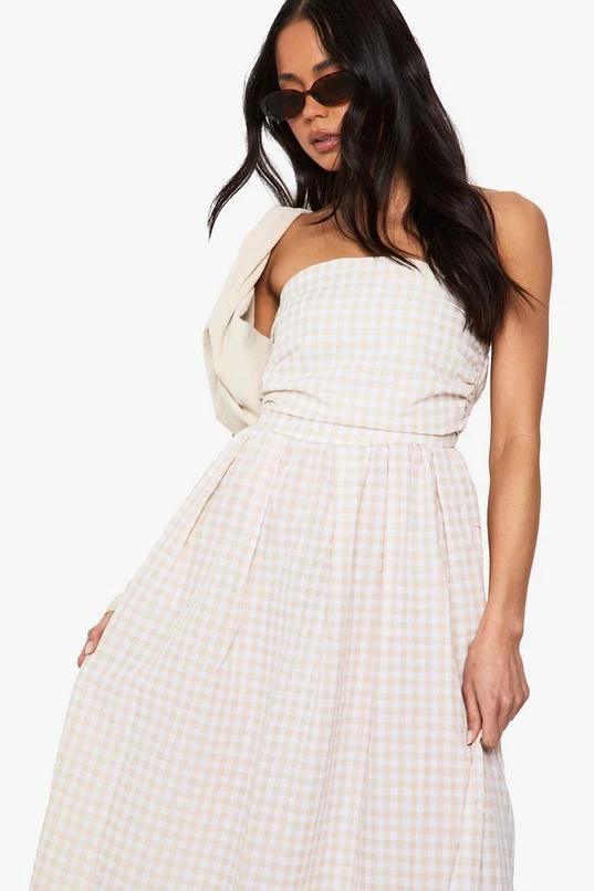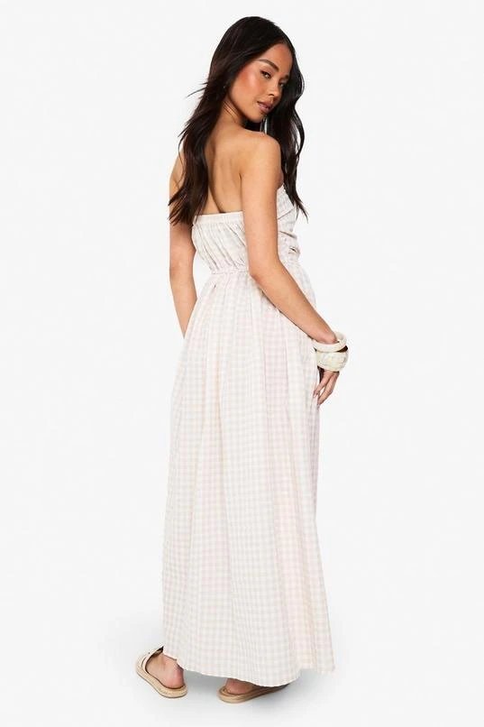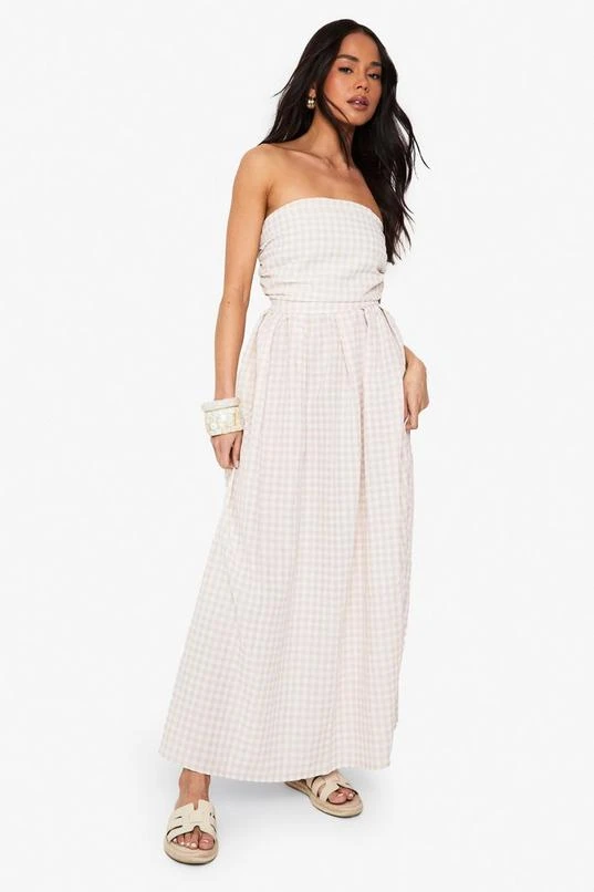 BOOHOO Gingham Ruched Bandeau Midaxi Dress