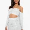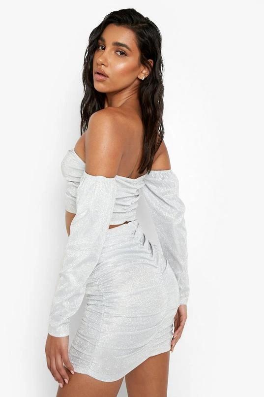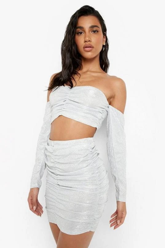 BOOHOO Glitter Ruched Front Mini Skirt