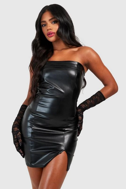 BOOHOO Halloween Bandeau Pu Split Mini Dress