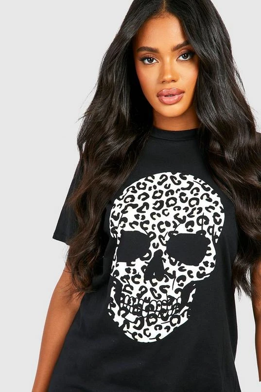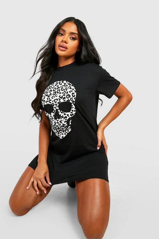 BOOHOO Halloween Leopard Skull T-Shirt Dress