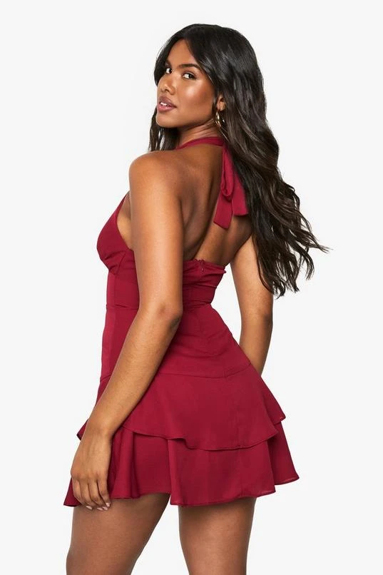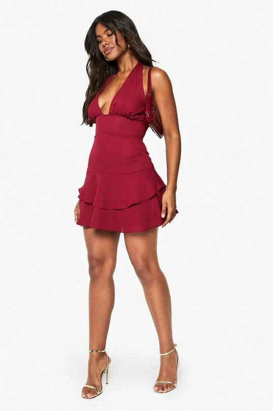 BOOHOO Halterneck Chiffon Skater Mini Dress