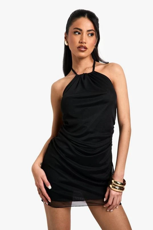 BOOHOO Halterneck Mesh Mini Dress
