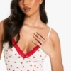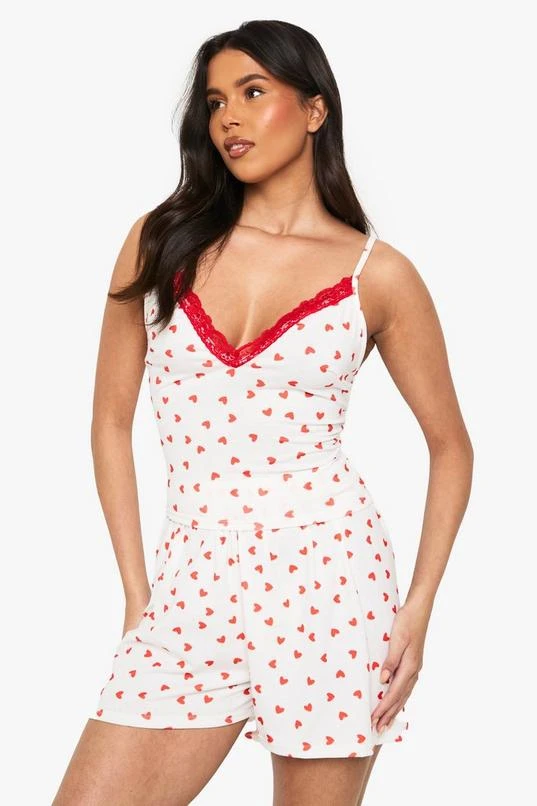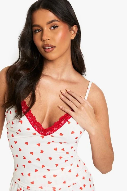 BOOHOO Heart Print Lace Trim Cami & Shorts Pyjama Set