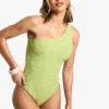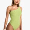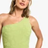 BOOHOO Hibiscus Flower Embossed One Shoulder Swimsuit