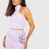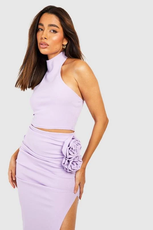 BOOHOO High Neck Top & Corsage Thigh Split Midi Skirt