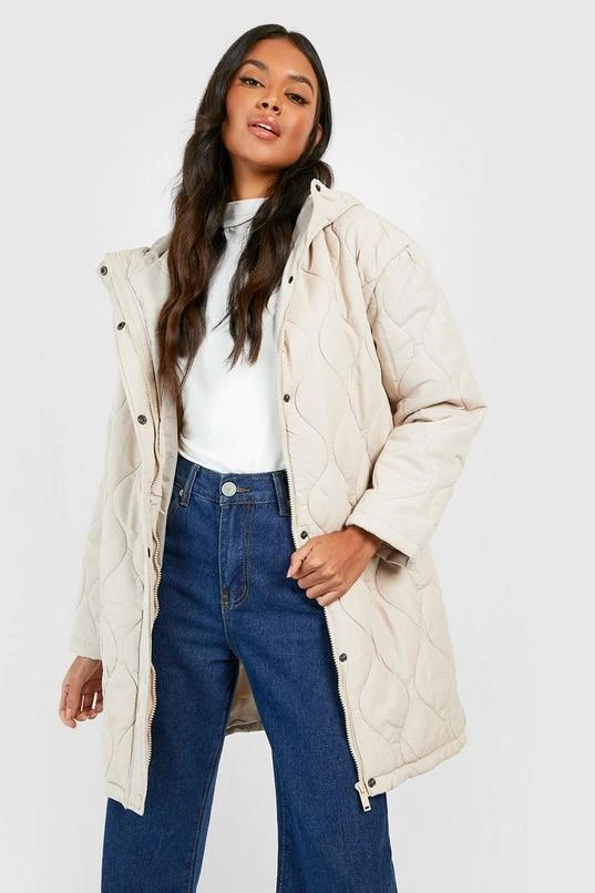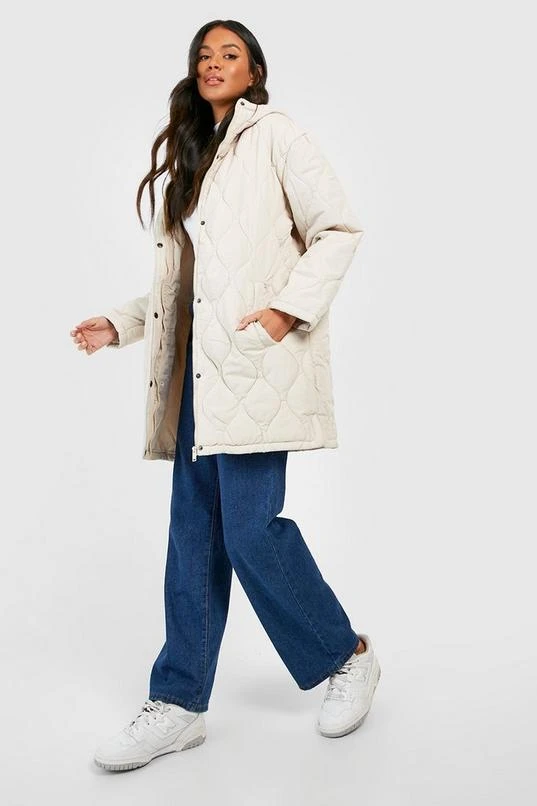 BOOHOO Hooded Quilt Detail Puffer