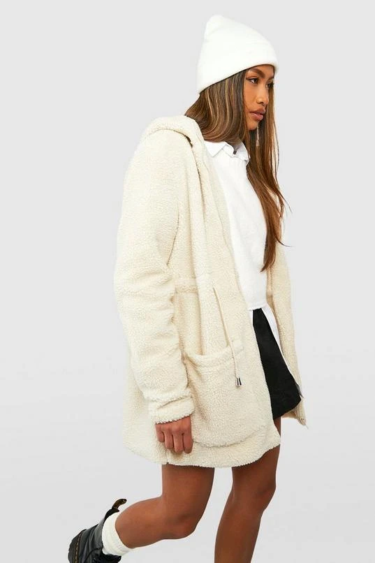 BOOHOO Hooded Teddy Faux Fur Jacket